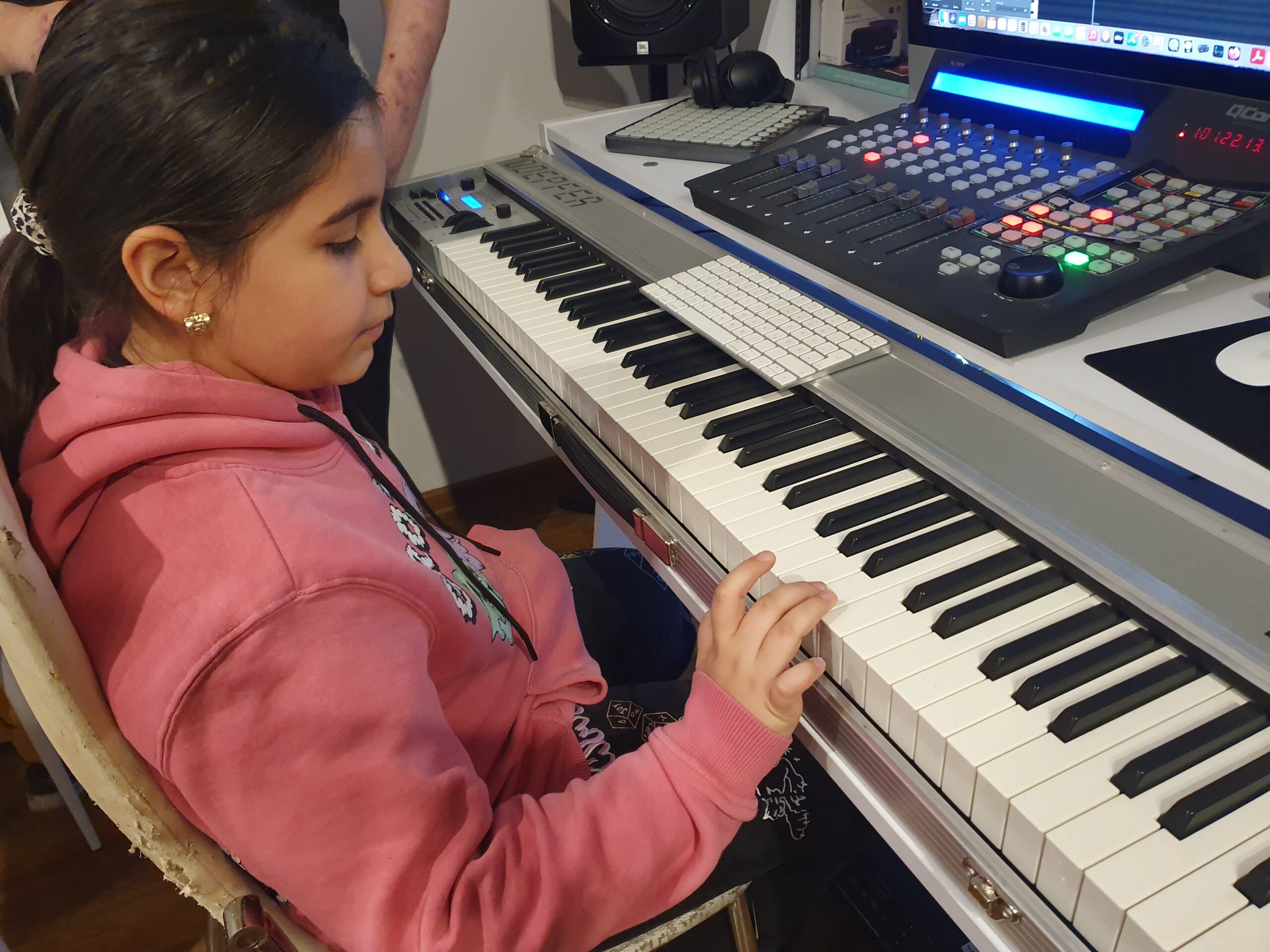 Warsztaty muzyczne prowadzone przez Sinto Valentina to wyjątkowe spotkanie z muzyką jako narzędziem twórczym, emocjonalnym i terapeutycznym. Część zajęć odbyła się w studiu kompozytorskim Sinto Valentina, gdzie dzieci miały okazję poznać profesjonalne środowisko pracy kompozytora.